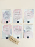 Display ideas: Use the included stand for you bedside table, window sill, or desk. Stick cards directly to your mirror or locker, or add string & twine to hang. Or why not frame each card for your child's room or play area.